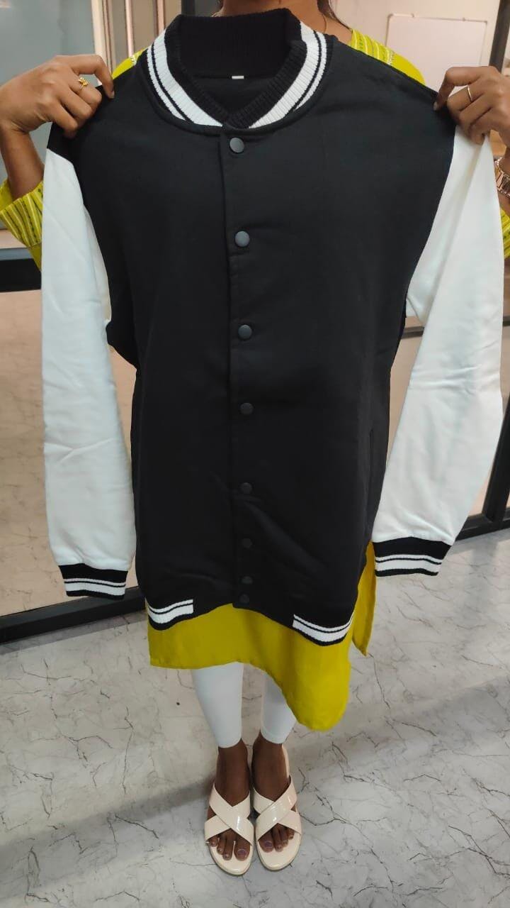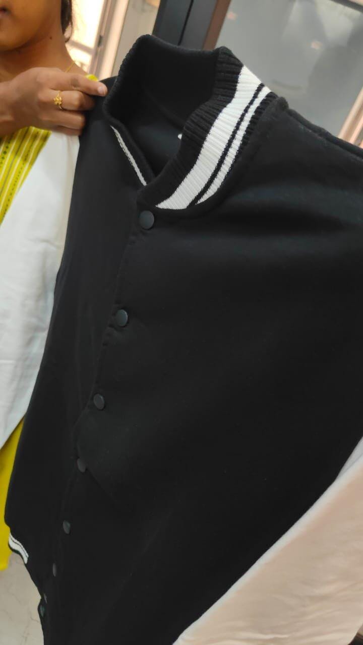 Bought this varsity jacket for my college fest. quality and stitching both too good. the black and white combo looks classy and got many compliments. little heavy but feels warm and soft inside.