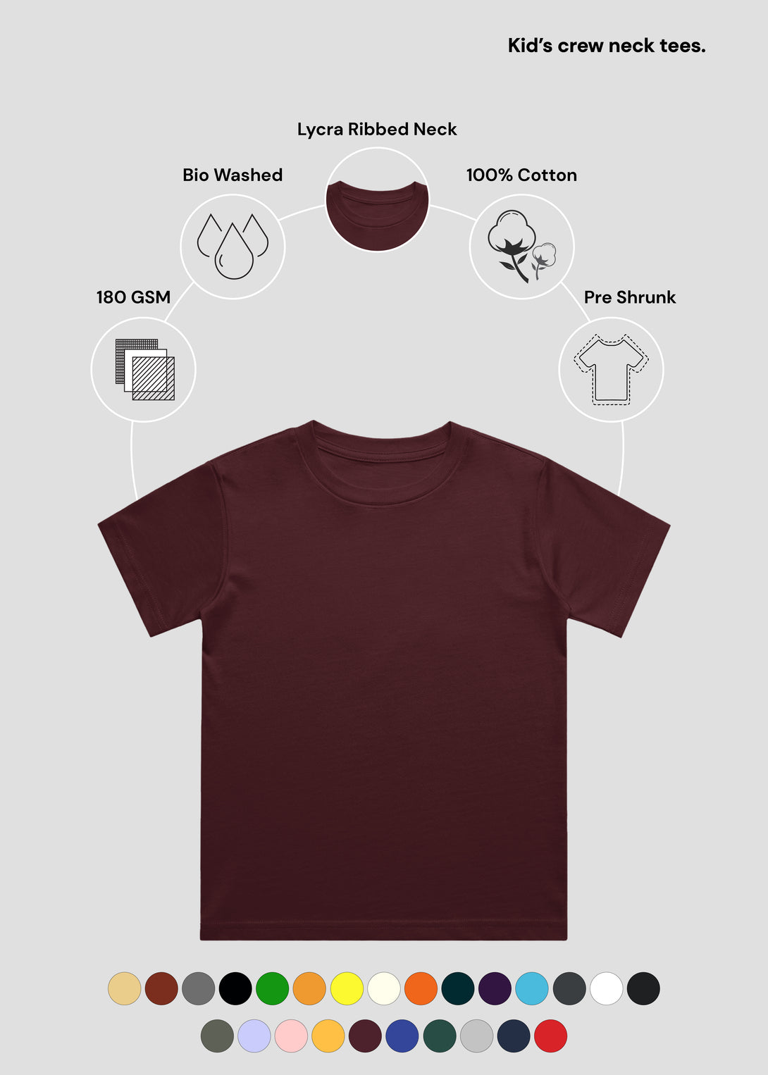 - Made from premium 180 GSM super combed bio-washed fabric for a soft and gentle feel on kids' skin. Solid colors are 100% cotton, while melange colors feature a 90% cotton and 10% melange blend.