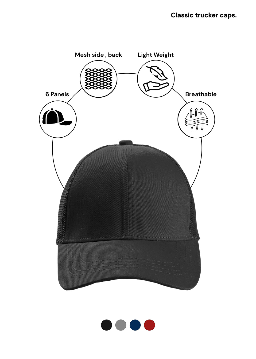 - Stylish and breathable trucker caps suitable for both men and women.