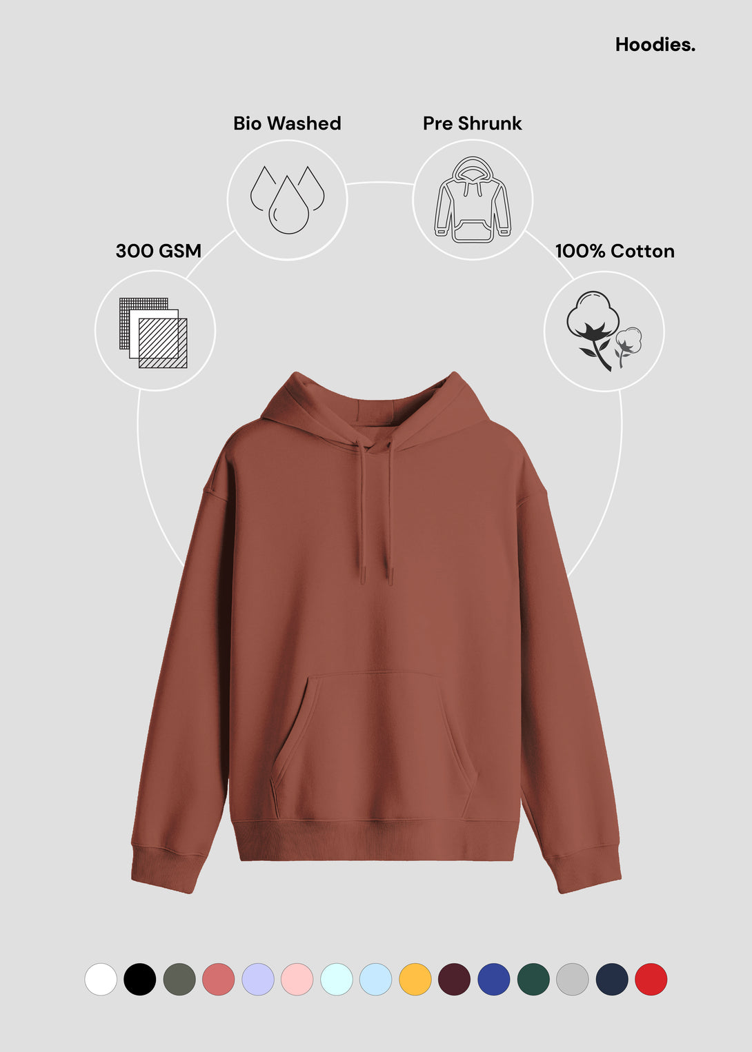 - Made from premium 300 GSM fabric with 90% cotton and 10% polyester - cotton on the outer and inner layers for a soft, natural feel, and polyester in the middle for elasticity and durability.