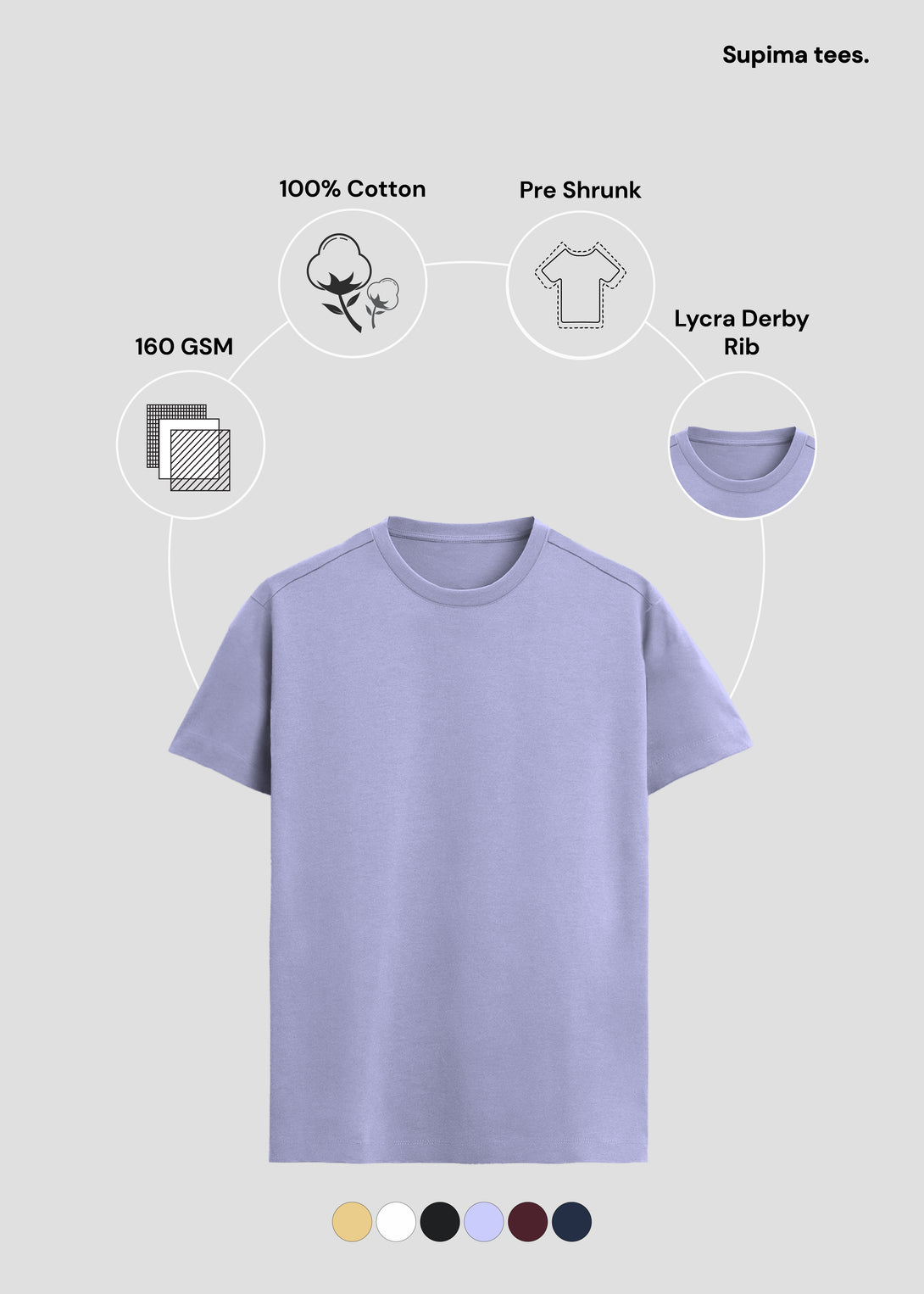 - Made from 100% Supima cotton with 160 GSM fabric, offering a luxuriously soft, breathable, and durable feel.