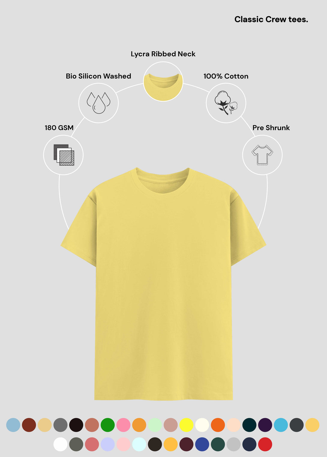 - Made from premium 180 GSM super combed bio-washed fabric for a soft and breathable feel. Solid colors are 100% cotton, while melange colors feature a 90% cotton and 10% melange blend.